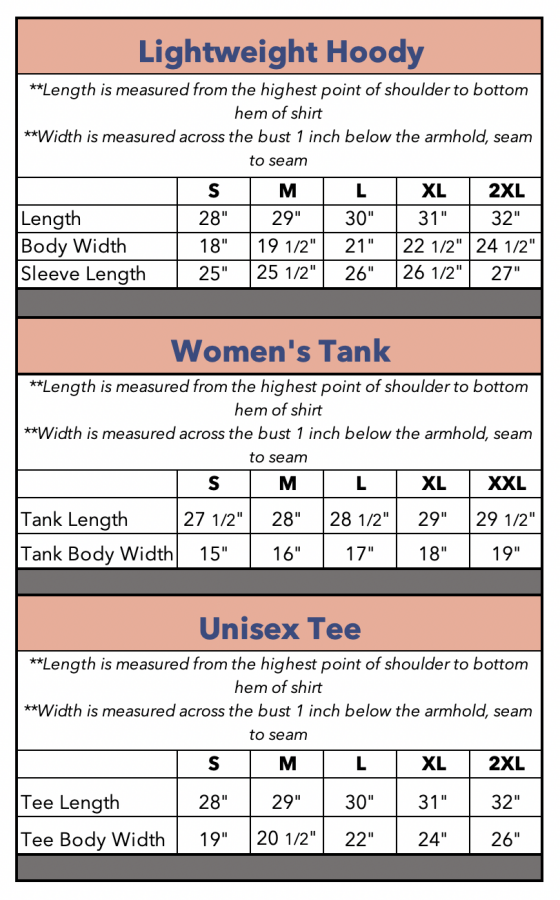- DO YOU HAVE A SIZING CHART AVAILABLE? Yes, you can view our shirt sizing guide HERE