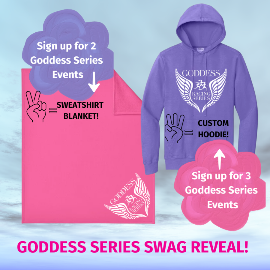 - Finish any two races and receive a Goddess Racing Series Sweatshirt Blanket!