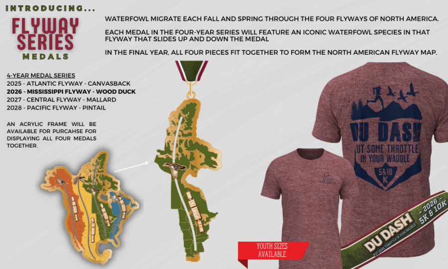 The DU Dash is a virtual run, walk, or ride hosted by Ducks Unlimited, Inc., supporting waterfowl and wetlands conservation. Join us and "put some throttle in your waddle" to support waterfowl, wetlands, and clean water!