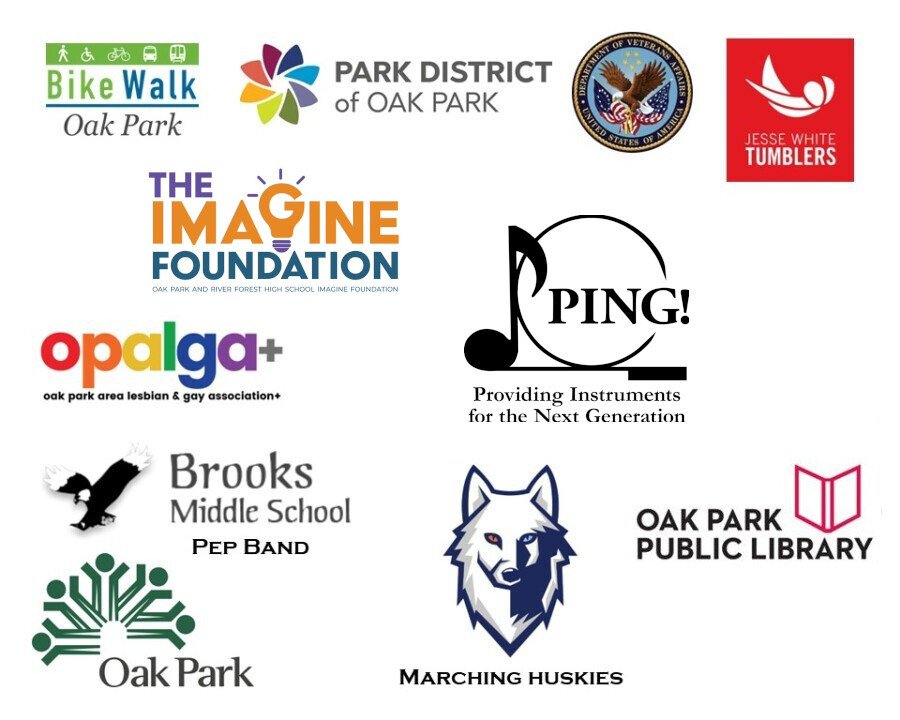 Community Partners: Imagine Foundation, Oak Park Public Library, Oak Park Office of the Village Clerk, Brooks Pep Band, OPRF Drum Line, Bike Walk Oak Park, Park District of Oak Park, OPALGA+, Edward Hines VA, and Ping!
