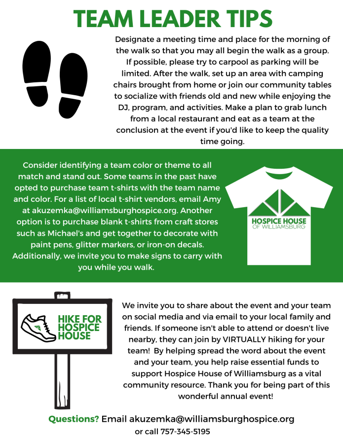 Since 2013, Hospice House of Williamsburg has raised over $700,000 through its annual Hike for Hospice House. Hospice House of Williamsburg offers care, comfort, and compassion through and beyond end of life as well as bereavement support to all free of charge. Funding raised through events like Hike for Hospice House ensures that all service to guests and their loved ones can remain cost-free and that Hospice House can remain a vital and accessible resource to serve the Williamsburg community and beyond.