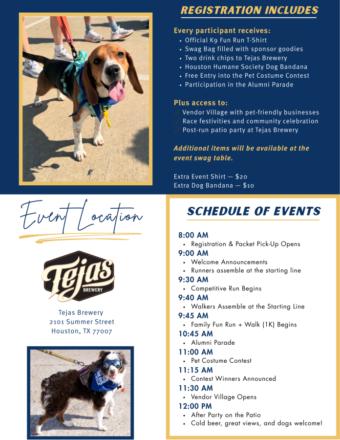 Houston Humane K9 Fun Run & Walk is Houston’s oldest dog walk! Through this event, we are able to fundraise for the homeless, abused, and rescued pets of Houston.