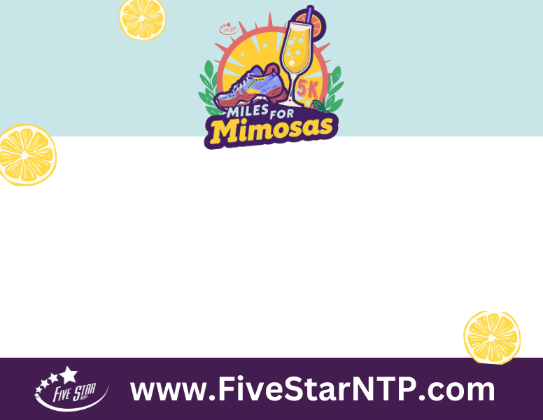 - Share your distance, a selfie, or a picture along your race route and use the hashtag #MilesforMimosas #fivestarntp #fivestarrunning