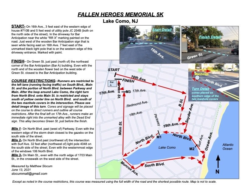 NJ FMBA Fallen Heroes 5K is held in Lake Como, NJ at 703 16th Avenue.