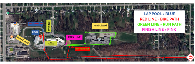 7:30 to 8:30 am - Mandatory check-in, swag and bib pickup, gear from the Cleveland Tri Club, a cookie ticket at C & J Best Bakes, Raising Cane’s meal voucher, and other info at the rec center.