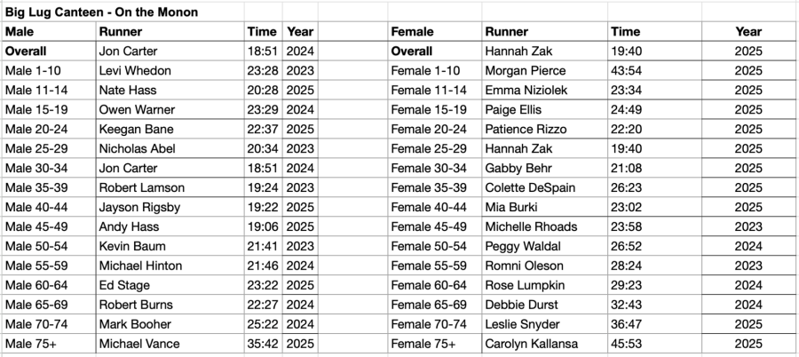 A: Yes – and no charge:) you know the rules… clean up. Please be respectful of other runners. Big Lug Canteen has a Dog Friendly Patio!