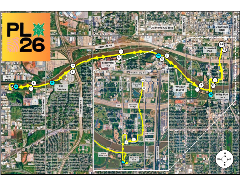 The Red Coyote Half Marathon and 5K will start and finish at Loves Travel Stage area and run down the main promenade across the Skydance Bridge on the way to the Oklahoma River Trails. The route runs through both the upper and lower parks before turning east on SW15th Street to Walker Avenue. Both courses run south on Walker across the Oklahoma River.