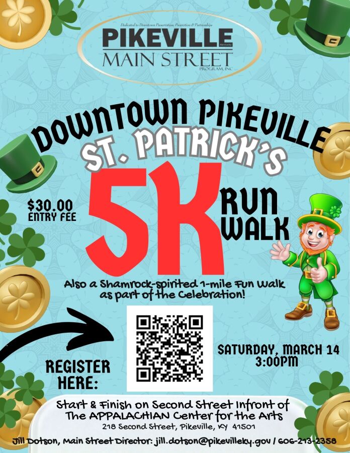St. Paddy's Day 5K Run/Walk takes place on Saturday, March 14, 2026 in Pikeville, KY.