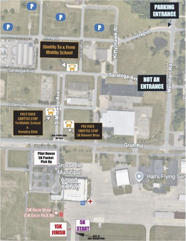 There is NO race parking at Grosse Ile Middle School or Grosse Ile High School on race day!