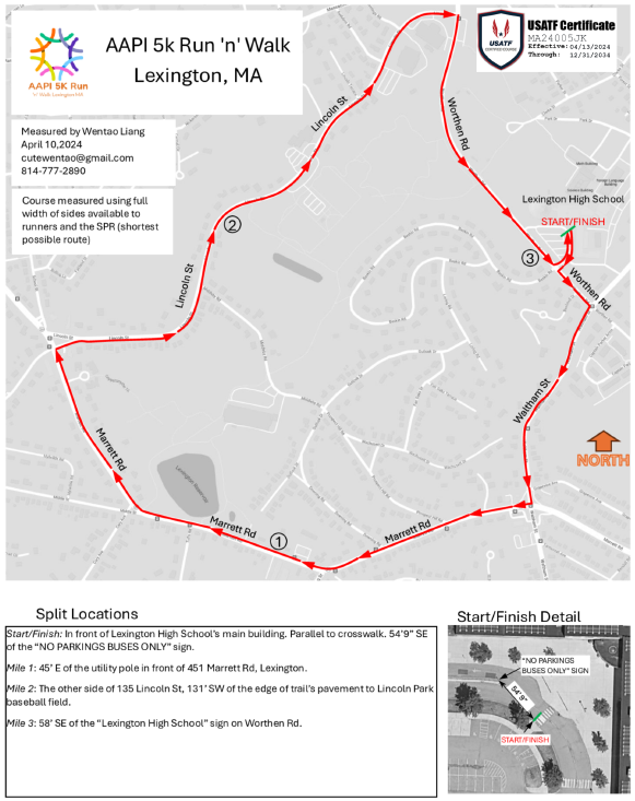 2026 AAPI 5k Run 'n' Walk Lexington is held in Lexington, MA at 251 Waltham Street.