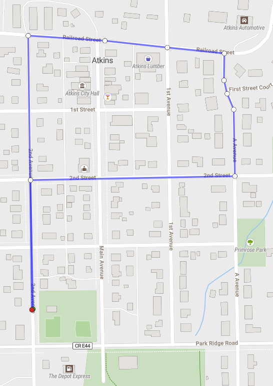 Start - Finish is located at the Atkins City Park Pavilion on the west side of the park. The race start time is 7:30 AM. The course will be on the streets & will be chip timed! Packets can be picked up before the race at the Atkins City Park Pavilion on the west side of the park starting at 7:00AM.