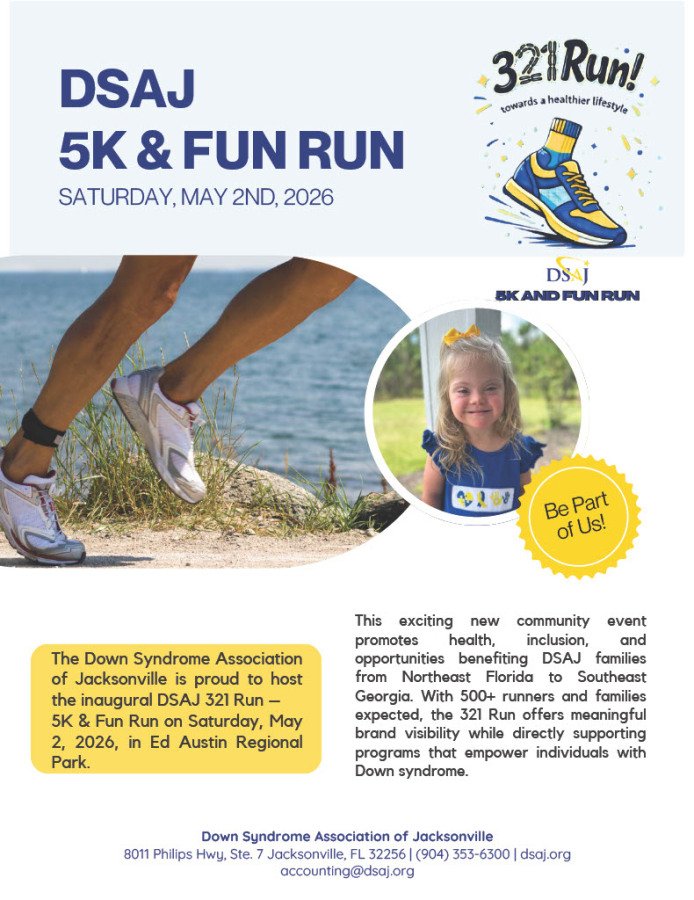 DSAJ JAX 5km & 1mile Fun Run takes place on Saturday, May 2, 2026 in Jacksonville, FL.