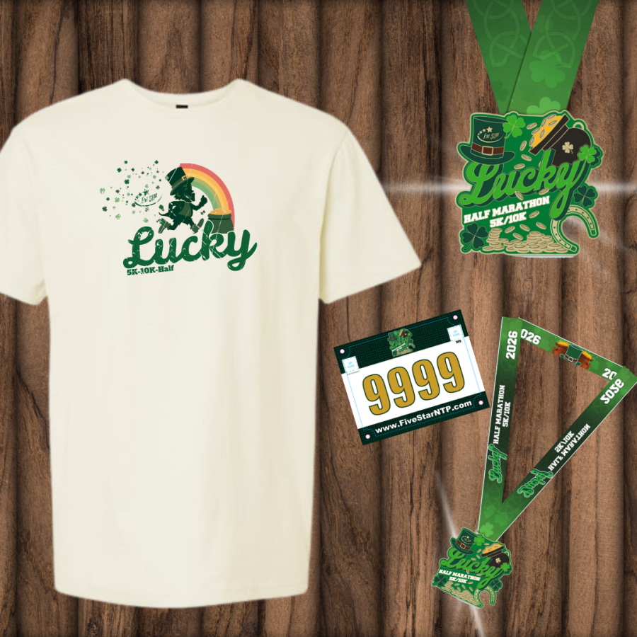 Share your distance, a selfie, or a picture along your race route and use the hashtag #Lucky5K10KHalfMarathon #fivestarntp #fivestarrunning
