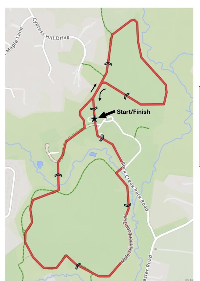 Race Course Information: The race course is a wide, natural trail traversing the park. There will be a water station at the 1.83 mile marker. No strollers allowed on the race course.