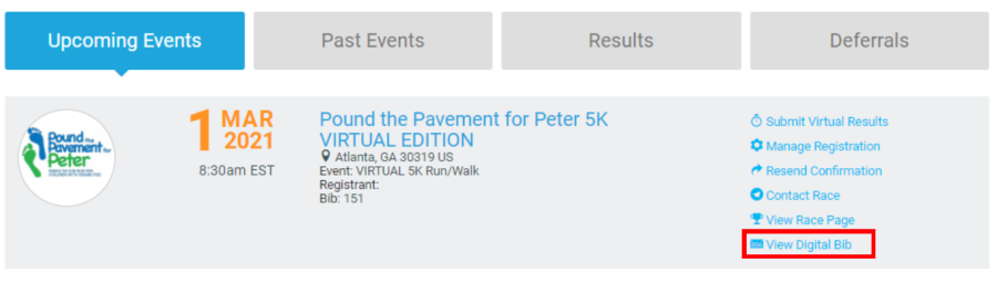 To download your custom race bib (you must be logged in) go to your account: https://runsignup.com/Profile.