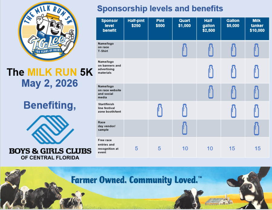 We are excited to let you know we are partnering with The Boys and Girls Club of Central Florida as our beneficiary of The Milk Run 2026. All proceeds will go to The Boys and Girls Club of Central Florida!