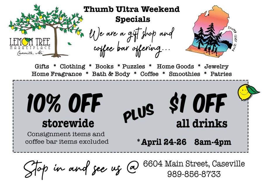 In town early? Stop by Thumb Brewery from 11:30-8:00 for lunch or dinner. Keep your eye on social media for their third annual Thumb Coast Ultra & Relay special tribute beer brew release!