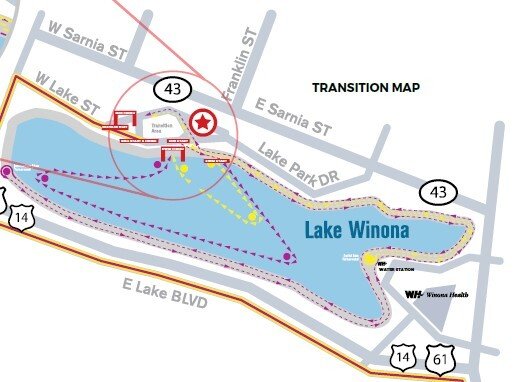 Experience one of the Midwest's most scenic race courses. Swim beneath the Sugar Loaf peak in Lake Winona, then head out for some country cycling, finishing with a flat, fast run along beautiful Lake Winona and ending at the historic Lake Park bandshell.